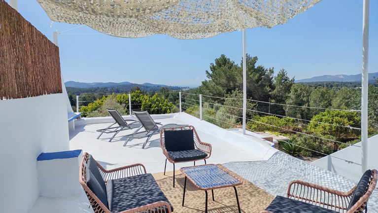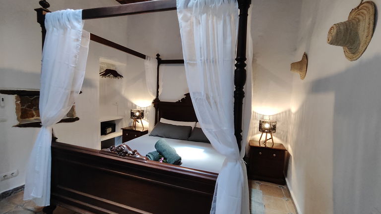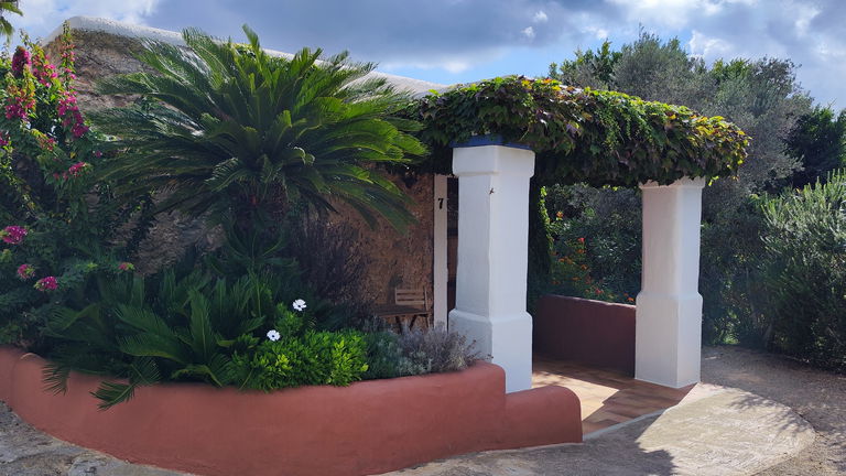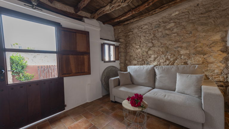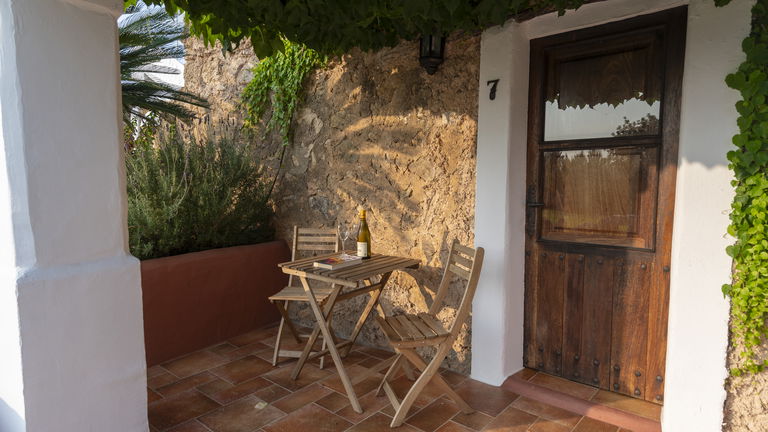 Si necesitas más espacio y quieres disfrutar de unas vistas privilegiadas al jardín y al campo ibicenco, esta suite es perfecta para ti. Esta habitación, con cincuenta y seis metros cuadrados, es la más grande de Can Marquet. Su amplia terraza privada convierte a este alojamiento en un espacio exclusivo de nuestro hotel rural.