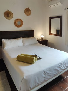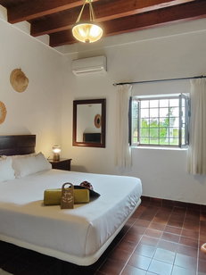 La mayor parte de las habitaciones se encuentran situadas en el interior de la casa principal. Disponen de una cama doble, televisor de pantalla plana y un baño equipado con ducha, secador de pelo, toallas y artículos de higiene personal. Asimismo, cuentan con aire acondicionado de frío y calor, minibar (de pago), caja fuerte y wifi gratuito.